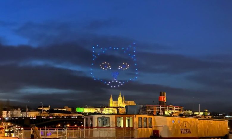 Dronová show rozzářila nebe nad Pražským hradem