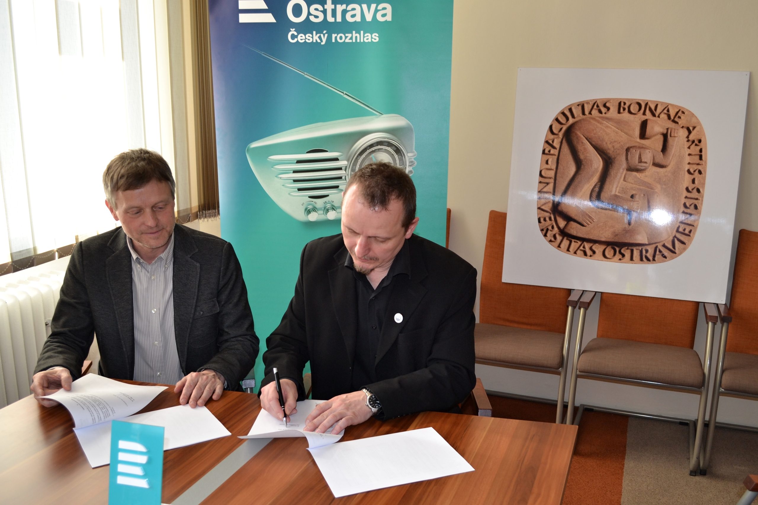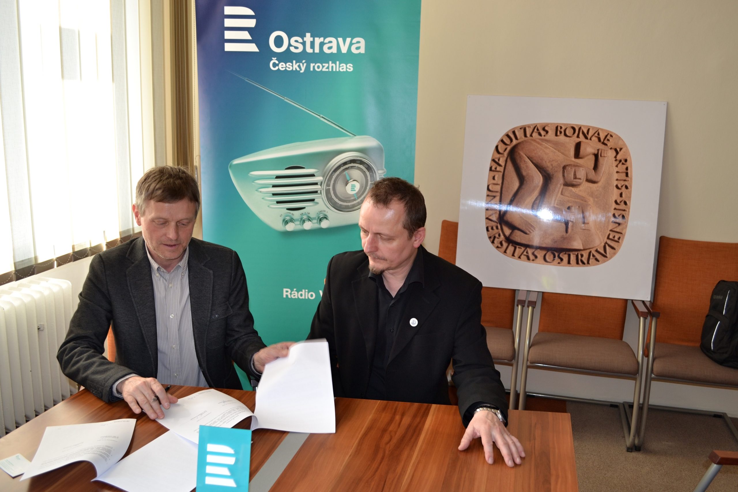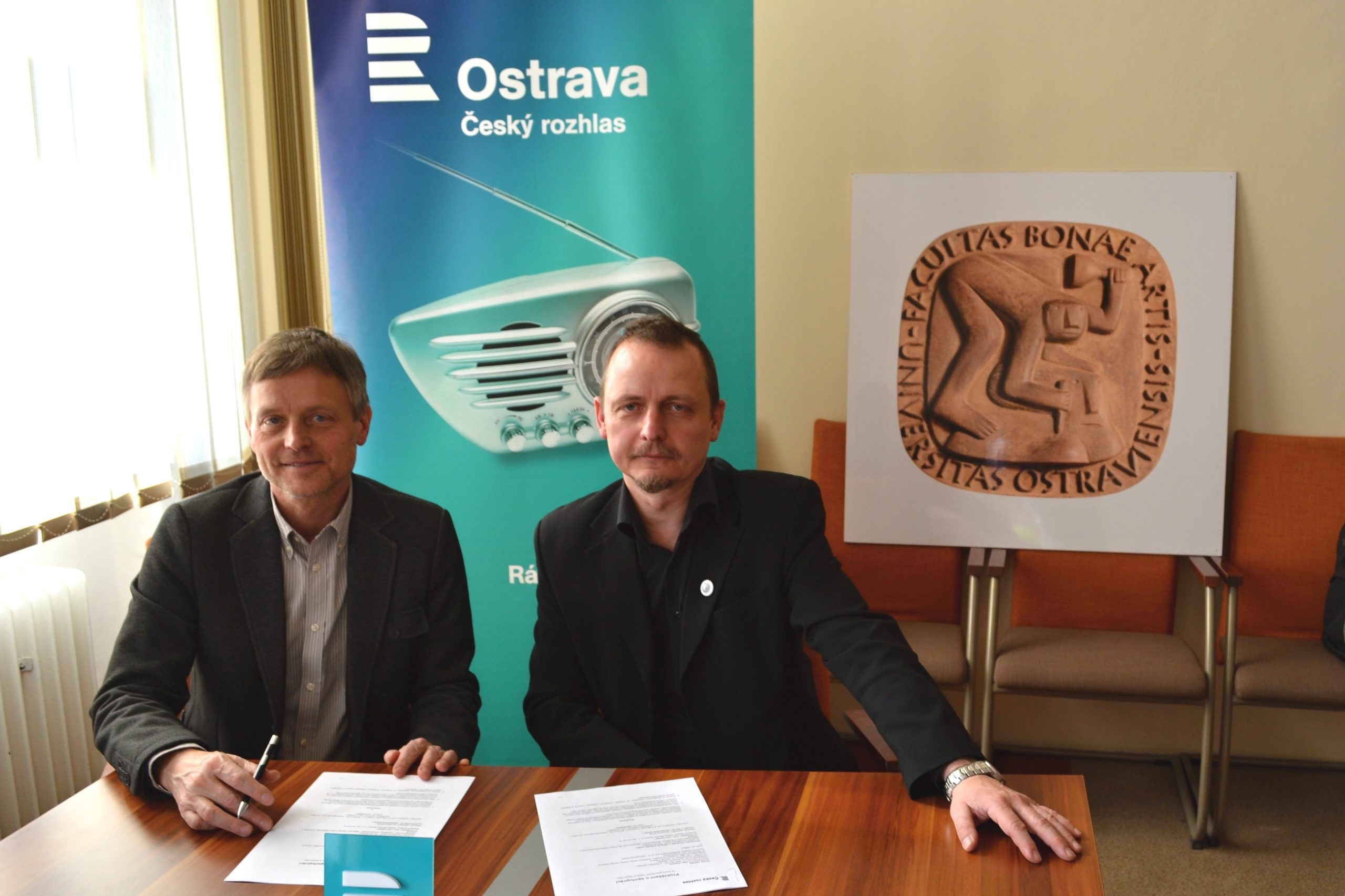 Ve středu 13. dubna se v budově Fakulty umění Ostravské univerzity sešli děkan Fakulty umění Ostravské univerzity doc. MgA. František Kowolowski a ředitel Českého rozhlasu Ostrava Dr. Mgr. Josef Podstata. Společně ratifikovali spolupráci mezi institucemi podepsáním Prohlášení o spolupráci.