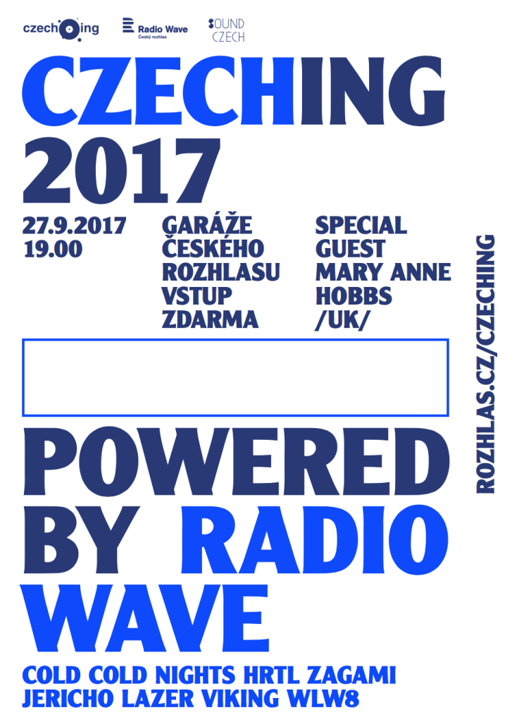 Startuje další ročník hudebně exportního projektu Czeching. Radio Wave tak už popáté podpoří české kapely, producenty a producentky na cestě k zahraničním posluchačům. Během září postupně představí ve vysílání a na webu všechny nominované muzikanty. Vítěze zvolí mezinárodní porota složená ze zástupců více než deseti evropských rozhlasových stanic. O dalším vítězi rozhodne veřejnost prostřednictvím hlasování na internetu. Pátý ročník vyvrcholí 27. září akcí Czeching Showcase v garážích Českého rozhlasu, kde zahrají nominované kapely a bude vyhlášen vítěz Czechingu 2017. Na afterparty pak vystoupí proslulá anglická DJka Mary Anne Hobbs.